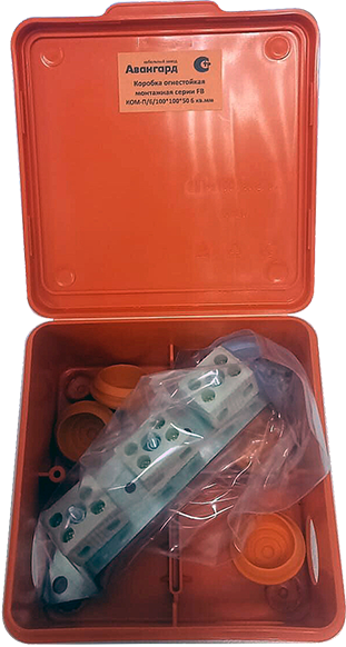Коробка огнестойкая монтажная пылевлагозащитная КОМ-П IP54 предназначена для коммутации кабелей, проложенных внутри и вне помещений открыто или с использованием кабель-каналов, гофрированных труб и металлорукава, в том числе в составе Огнестойкой кабельной линии. Коробка огнестойкая монтажная КОМ-П IP54 состоит из корпуса из не поддерживающего горение полипропилена и металлического кронштейна с необходимым количеством керамических клеммных колодок, сечение зажимаемых проводников 1,5 – 10 кв. мм. Коробки оснащены эластичными мембранными вводами в цвет корпуса. Степень защиты – IP54. Цвет корпуса – оранжевый.