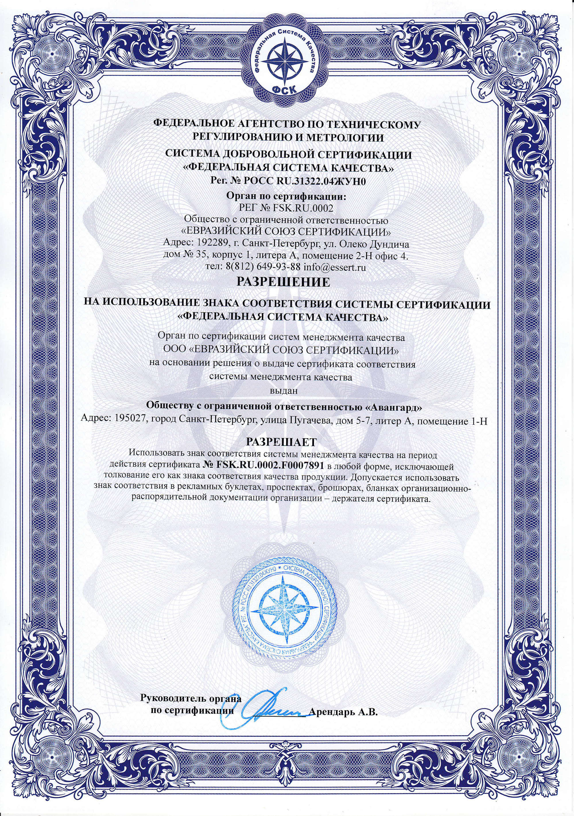 Продукция кабельного завода «Авангард» отличается от других производителей не только высокими характеристиками самого кабеля, но и европейским внешним видом упаковки. Высокий уровень организации производственного процесса кабельного завода «Авангард» подтверждено сертификатом соответствия международного стандарта ISO 9001:2015 (ГОСТ ИСО 9001-2015) менеджмента организации процесса проектирования, разработки, производства и поставки: огнестойкого кабеля; кабеля не распространяющего горение; не токсичного кабеля; силового кабеля; провода связи и кабеля для монтажа охранно-пожарной сигнализации.